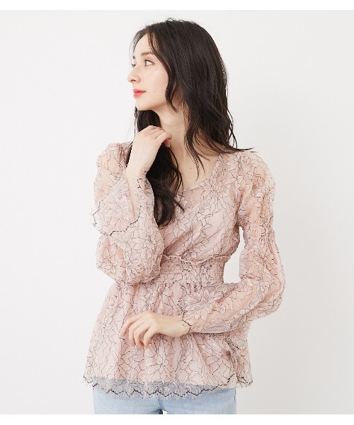 トップスフラワーレースペプラムブラウス シャツ ブラウス Rienda リエンダ のファッション